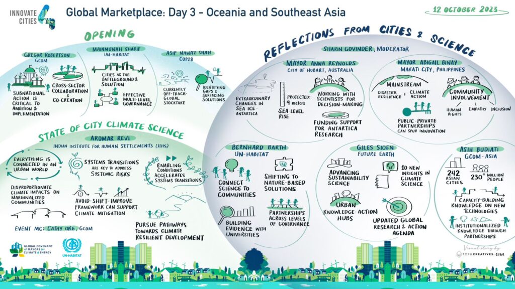 The Global Covenant of Mayors for Climate & Energy (GCoM) and UN-Habitat invited cities and local governments, and their partners in climate action research and innovation, to the first of its kind Innovate4Cities (I4C) Global Marketplace that took place October 10-12 2023 online.
